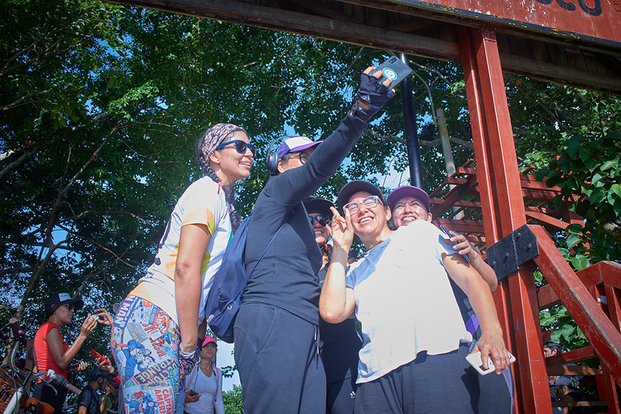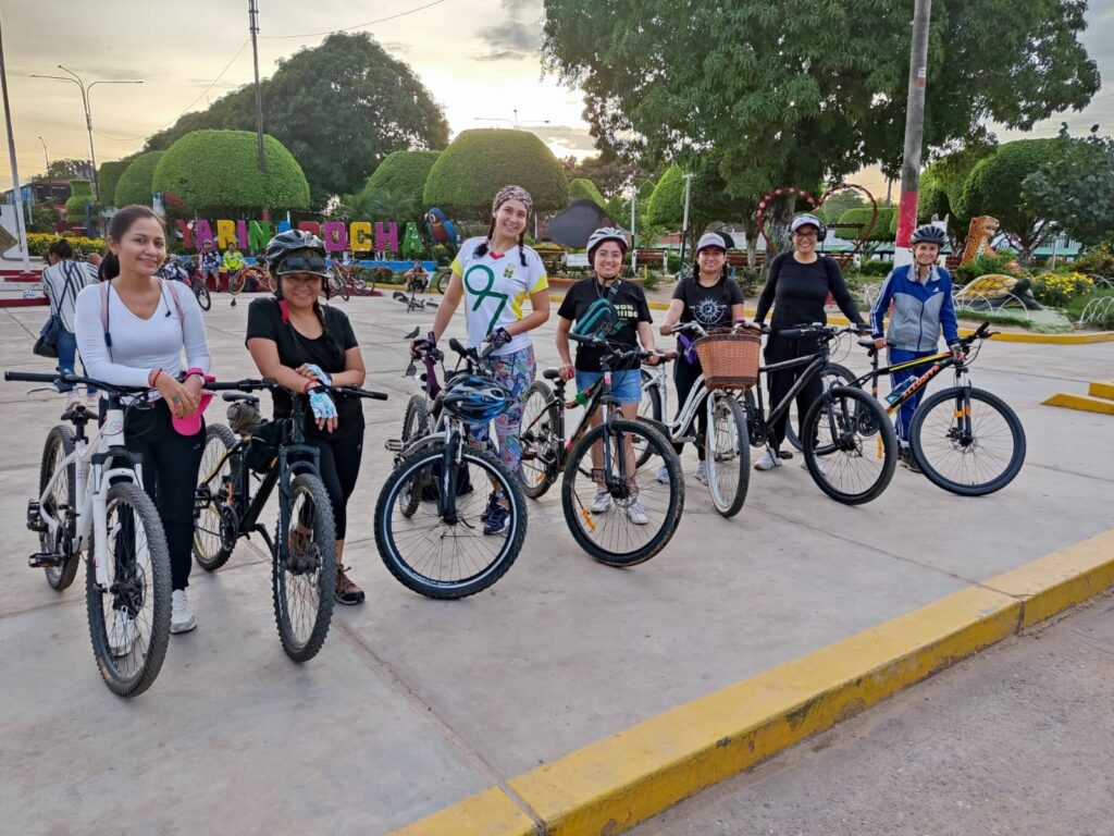 Así que la gente fue llegando a la plaza, como el grupo de chicas ciclistas «Las Divinas» grupo que me acogió cuando salía en soledad y al cual invité a participar en esta nueva ruta. Algunas de ellas no estaban muy seguras de llegar a la meta, pero como somos una mancha solidaria, les comenté que estaríamos pendientes de las personas que van más despacio, ya que no se trata de una competencia, sino de que cada uno vaya a su ritmo y de esa manera llegue a la meta propuesta.