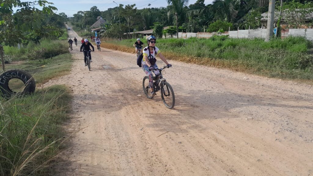 Y no hablamos de miles de miles de kilómetros, cruzando parte de Latinoamérica, para pasar por Centroamérica y llegar a la tierra del tío Sam, admirar el Puente Golden Gate y quizás buscar la casa de los Tanner… No. Hablamos de la ruta a la Comunidad Nativa de San Francisco, ubicada aproximadamente a 13 kilómetros de la Plaza del distrito de Yarinacocha, a la que bien puedes ir en bote (Que es una muy bonita experiencia) o puedes tomar tu bici y seguirnos, como lo hicieron las personas que verás en las siguientes fotos.