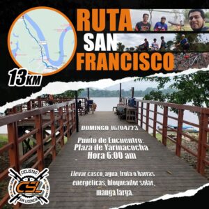 Este Domingo estaremos realizando la ruta a la comunidad nativa San Francisco, serán 13 kilómetros desde la plaza de Yarina a la comunidad, así que te recomendamos llevar lo siguiente: